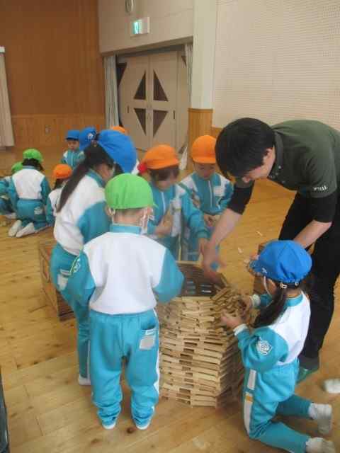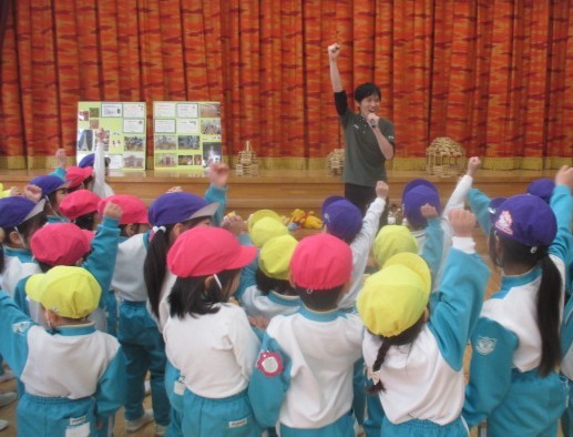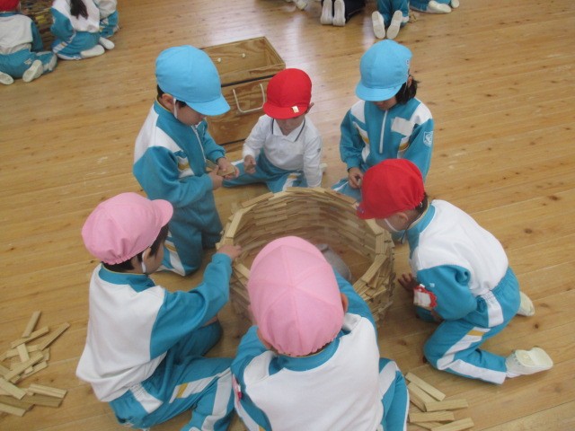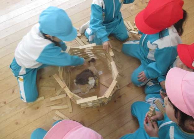 「みんなで力を合わせて、おうちを作ろう!」「エイエイオ~!!」