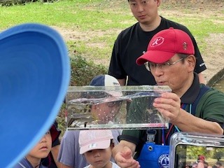幼稚園の近くの猪名川上流でおうちの方を一緒に水生生物や魚などの生き物探し!!豊かな自然に触れながら、楽しい時間を過ごしました。子どものころに戻ったお父さんお母さんもいたのではないでしょうか…