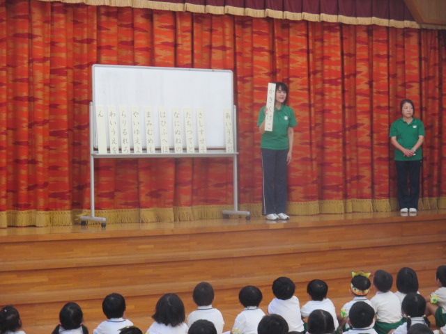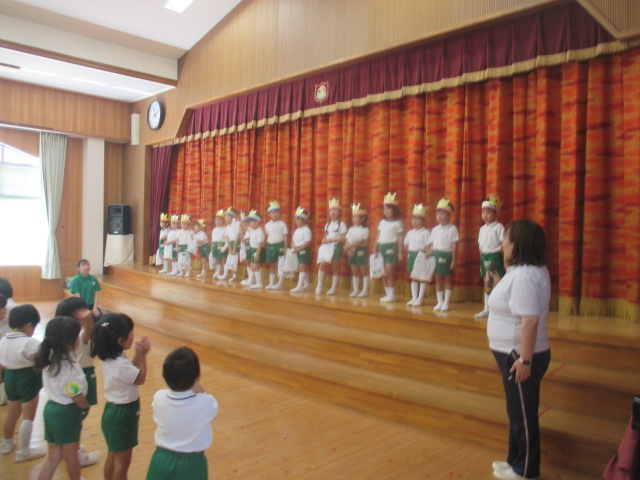 歌のプレゼントは年少「みずあそび」年中「手のひらを太陽に」年長「この木なんの木」です。手のひらを太陽には、今年度、ソニー幼児教育支援プログラムで研究した「みみず」の出てくる歌でした。たくさんの生物との関わりを大切にしていきましょう。