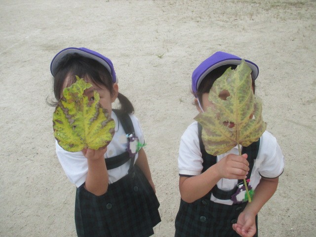 幼稚園では、いろいろな種類のとんぼやかまきりなどの虫、小さい秋をだんだんと感じることができるるようになってきました。園庭でもさわやかな風に吹かれて、げんきいっぱい遊んでいます。