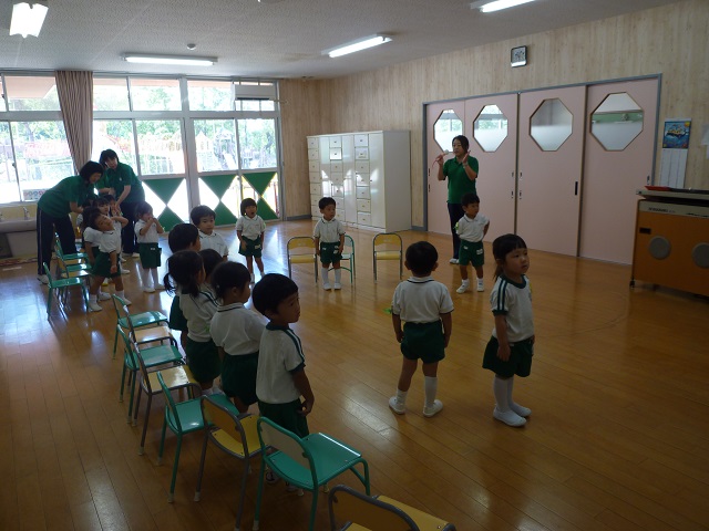 ピッコロタイムでは、季節のうた「とんぼのめがね」を歌いました。幼稚園の園庭にもたくさんのとんぼが飛び始めました。
