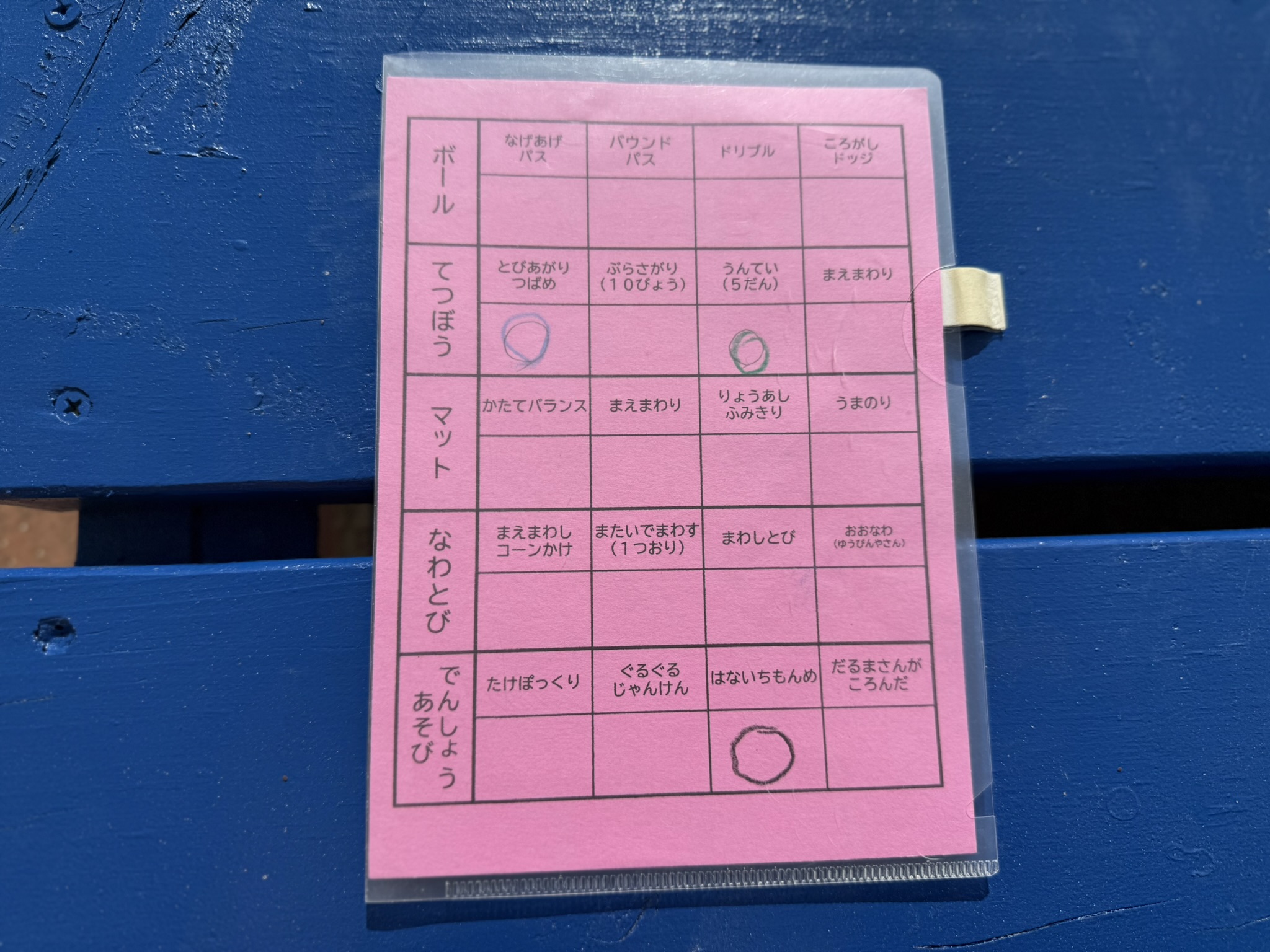 カードには、学年に応じた様々な運動が記されています。子ども達は自分で挑戦しようと思ったことに取り組み、〇を増やしていきます。子ども自身の「やってみたい」という気持ちを引きだし、主体的に行動する力を育てる大事な時間です。