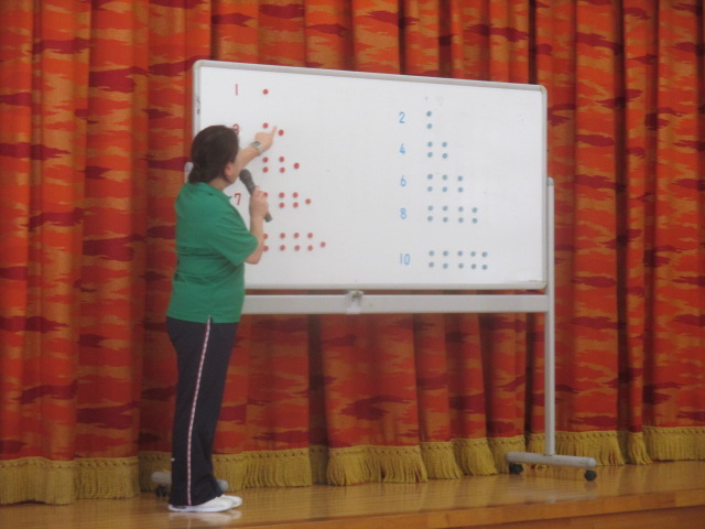 誕生会で入場してきたお友達も「奇数と偶数」をやってみました。きちんと自分の数字をわかり立つことができましたね。