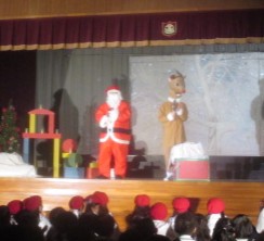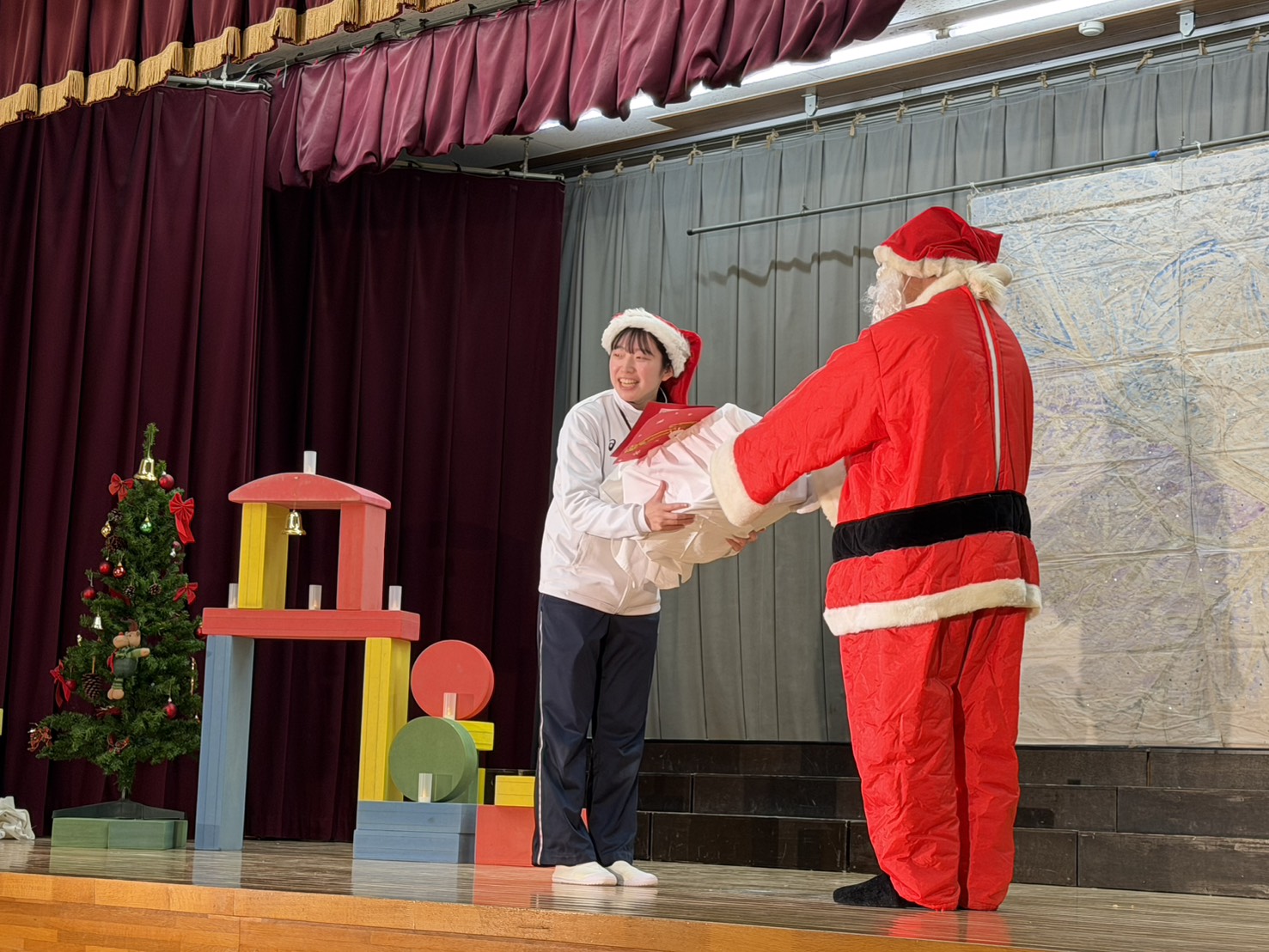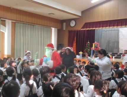 歌のプレゼントは年少「サンタクロースのおじいさん」年中「そうだったらいいのにな」年長「White Christmas」をプレゼント。年長組は英語で歌いました♪クリスマスが楽しみですね♪