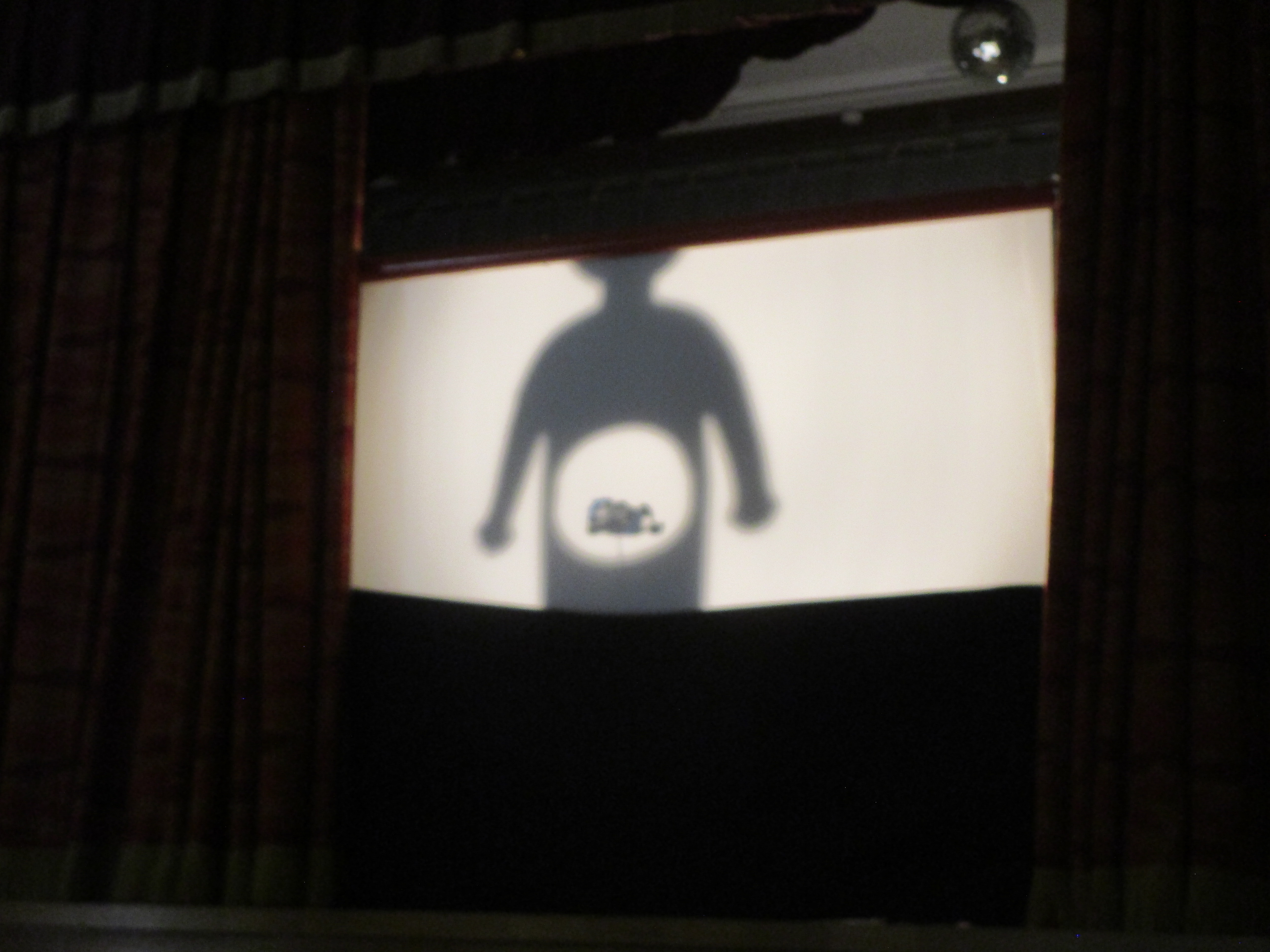 先生からのお話は、「おなかに中に鬼がいる」の影絵でした。光と影の画面に集中して聞いていました。