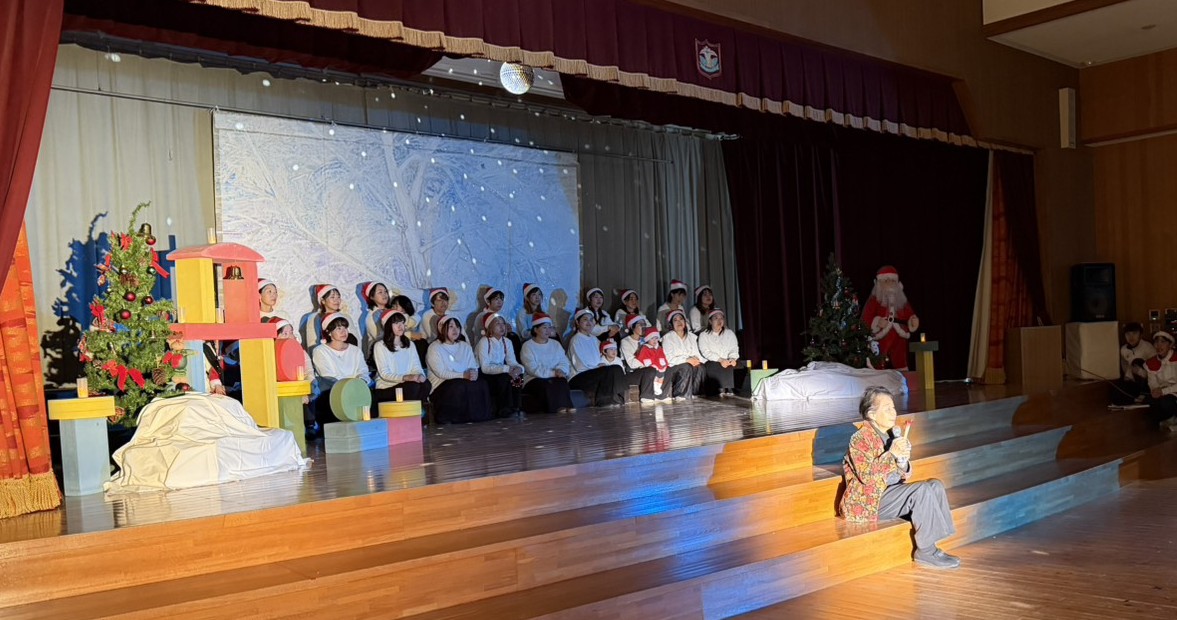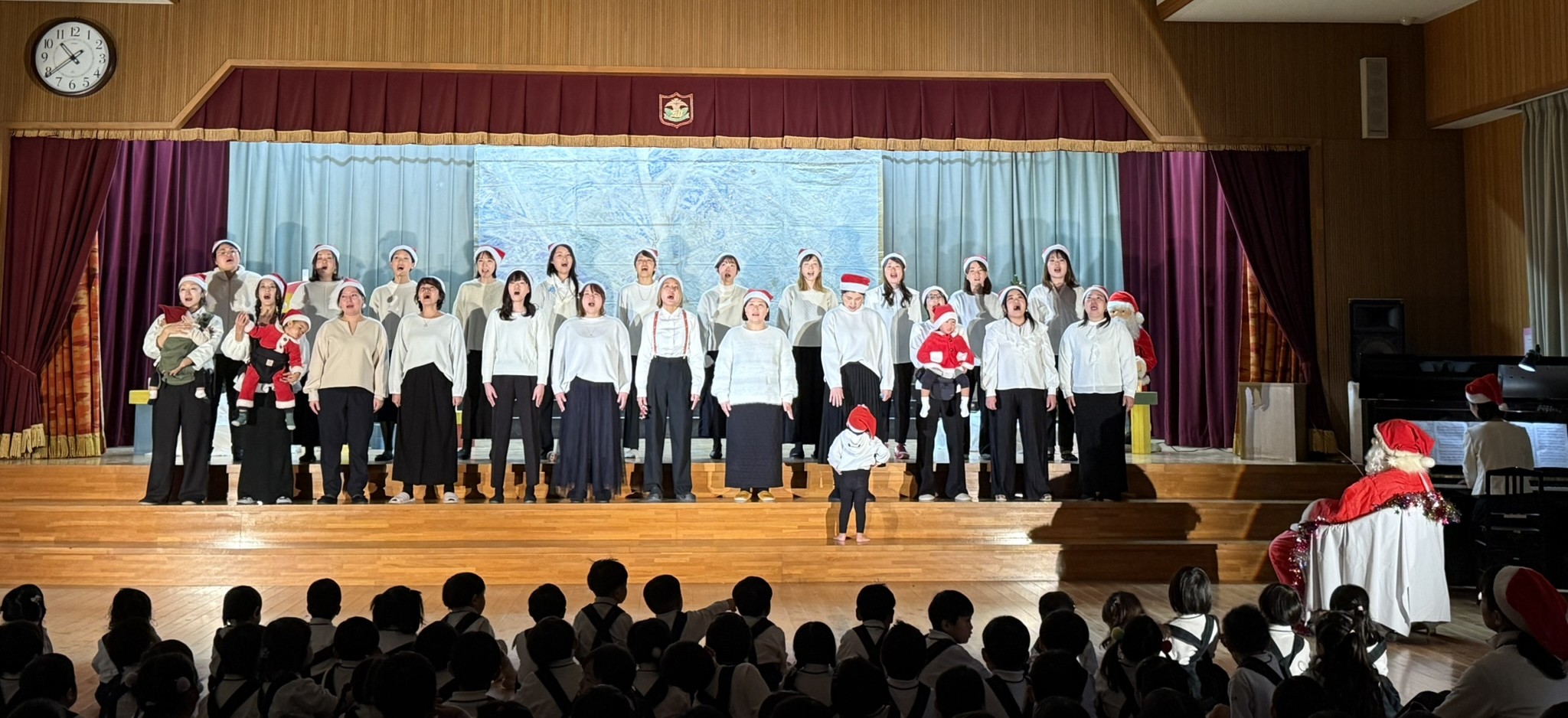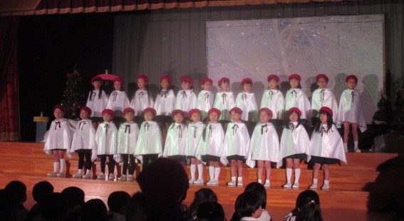 歌のプレゼントは年少「サンタクロースのおじいさん」年中「そうだったらいいのにな」年長「White Christmas」をプレゼント。年長組は英語で歌いました♪クリスマスが楽しみですね♪